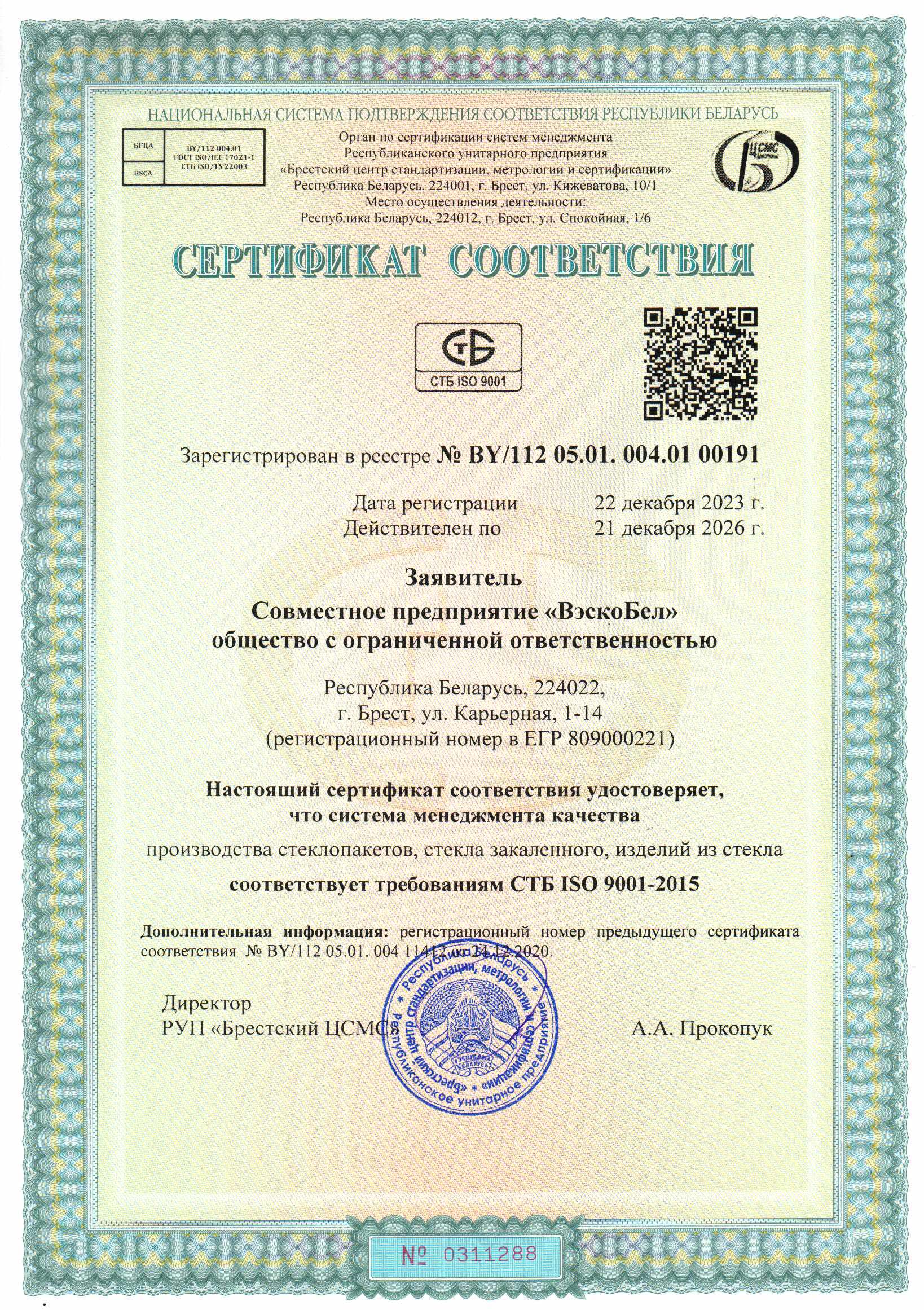 Для постоянного улучшения деятельности на предприятии внедрена и сертифицирована система менеджмента качества в соответствии с требованиями СТБ ISO9001. Каждый сотрудник своей деятельностью влияет на качество продукции и несет ответственность за качество своего труда.